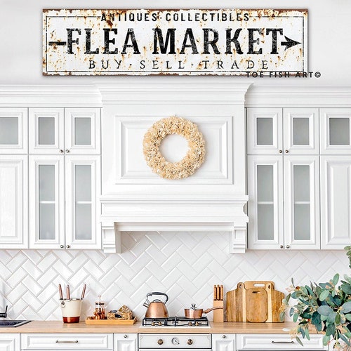 Vintage Flea Market Sign Modern Farmhouse Decor Antiques Sign Etsy