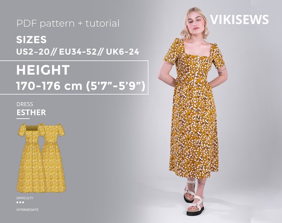 Esther Dress 170 176 Height Us Sizes 2 20 Pattern Button Etsy Schweiz